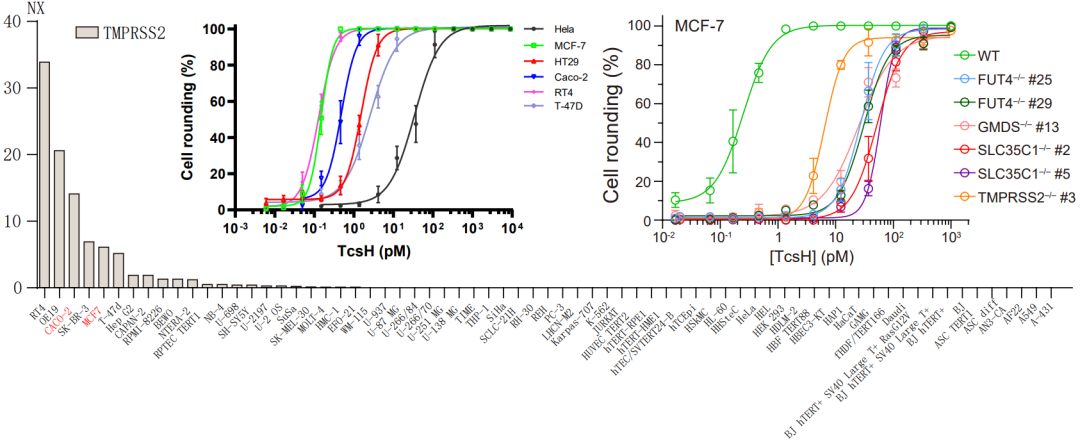 圖3. TMPRSS2 高表達(dá)的細(xì)胞展現(xiàn)出對(duì)TcsH的高敏感性